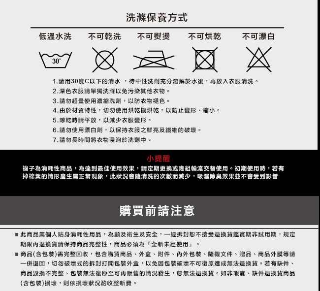 【購買前請注意!】★此商品屬個人貼身消耗性用品,為顧及衛生及安全,一經拆封恕不接受退換貨。鑑賞期非試用期,規定期限內退換貨請保持商品完整性,商品必須為『全新未經使用』。 本產品不提供試用,7天「鑑賞期」非「試用期」。欲辦理退貨之商品必須是全新完整、未拆封之包裝狀態(含商品本體、贈品、原包裝袋、盒、箱、隨貨文件)。除非是商品瑕疵問題,拆封後無法辦理退貨。 |