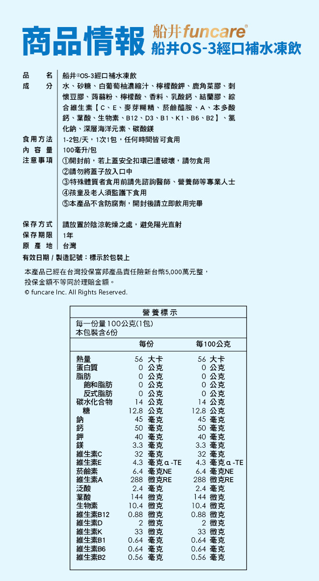 | 包裝內容/商品規格 | 船井®OS-3經口補水凍飲6入*3盒 |