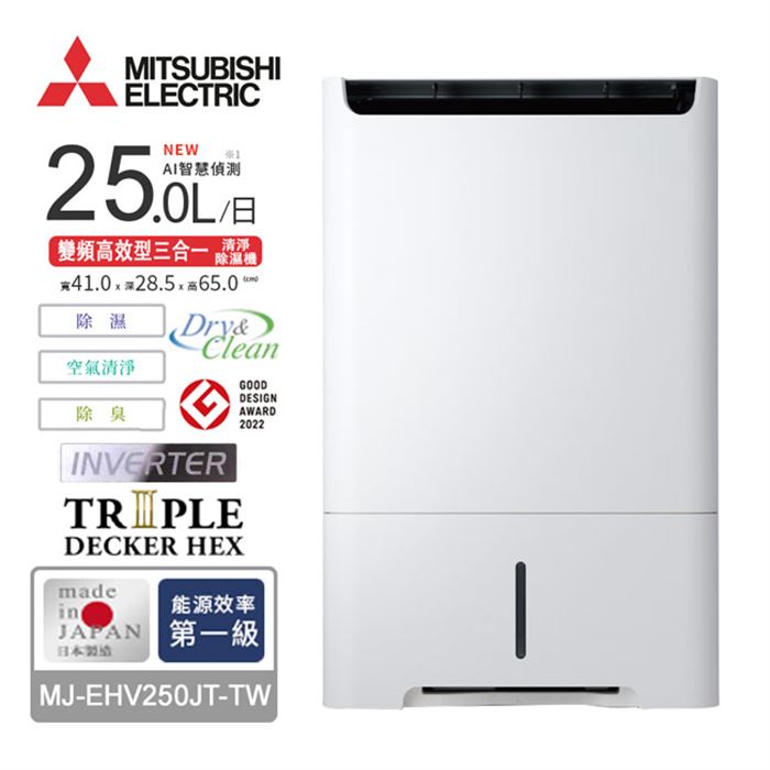 | 商品名稱 | 【MITSUBISHI三菱】25L變頻高效型三合一清淨除濕機 MJ-EHV250JT-TW |