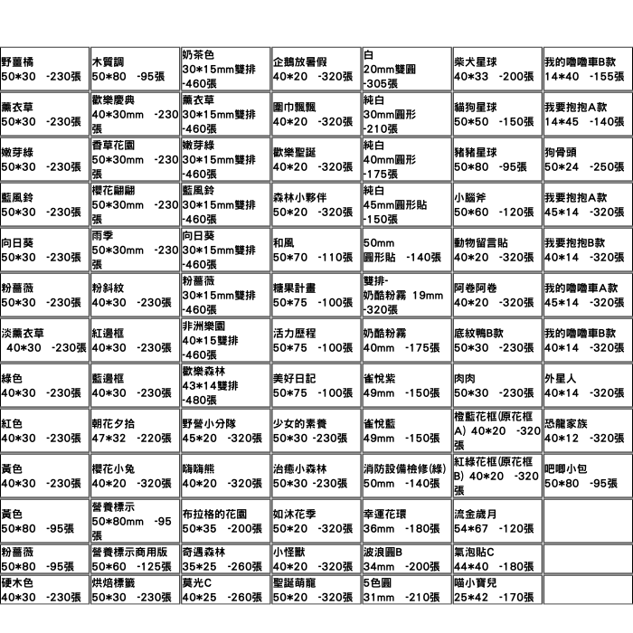 | 包裝內容/商品規格 | 30x15雙排1捲 50x50一捲 50x15雙排一捲 隨機花紋貼紙一卷 |