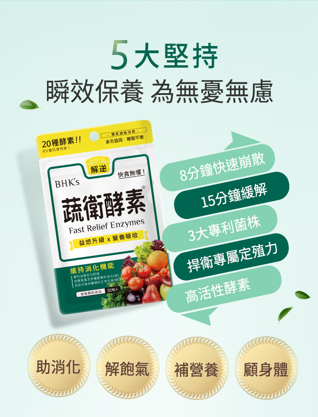 | 商品名稱 | BHK"s 蔬衛酵素 速崩錠 (30粒/袋) |