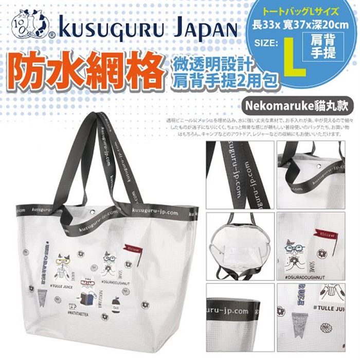| 商品名稱 | 日本眼鏡貓 防水網格微透明設計-L款 大肩背手提2用包 |