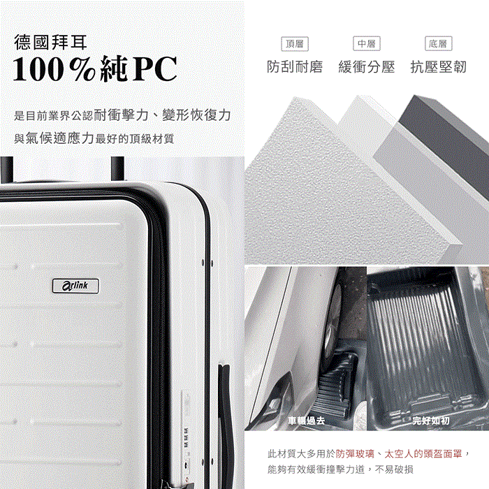 ●德國頂級100%純PC箱體,是業界公認耐衝擊力、變形恢復力與氣候適應力最好的頂級材質
