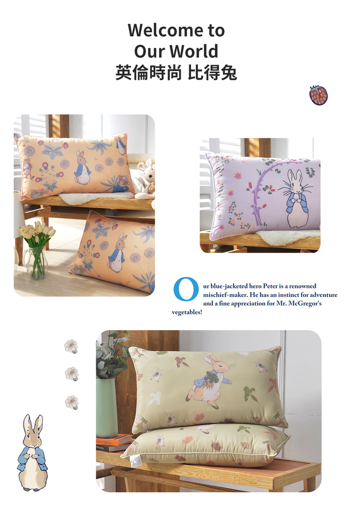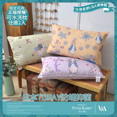 | 商品名稱 | 【PETER RABBIT 比得兔】比得兔與V&A博物館 日本TORAY防蹣抑菌可水洗枕-任選(2入/台灣製/抗菌枕/枕頭) |