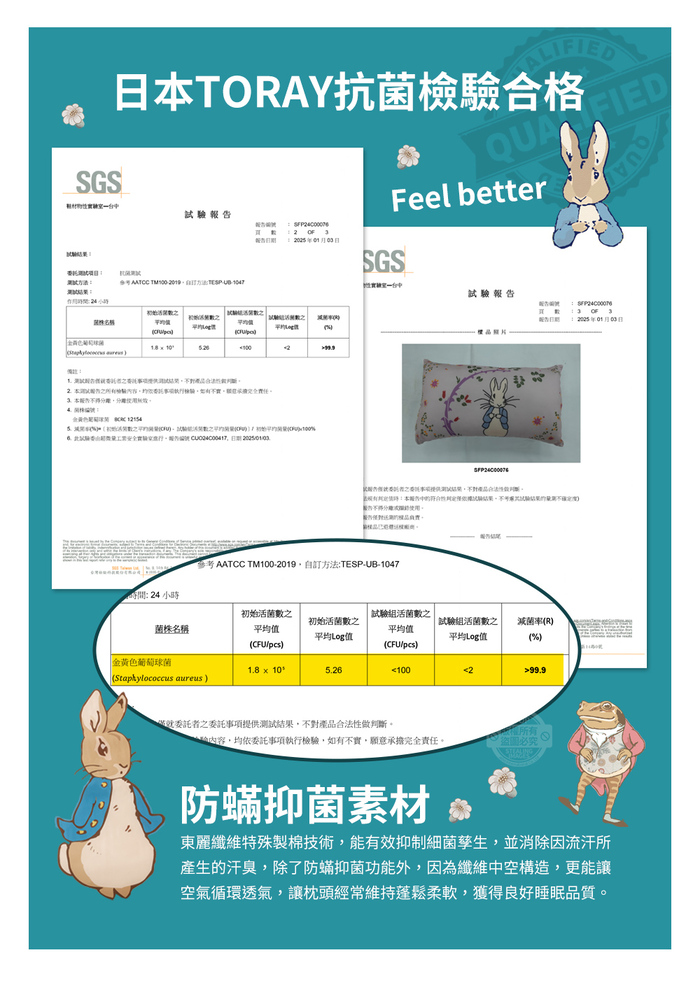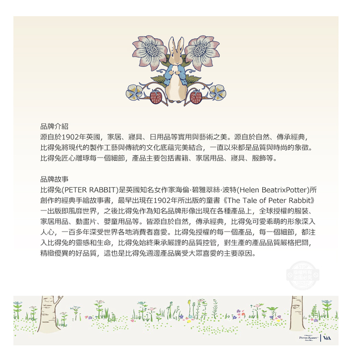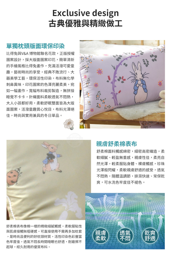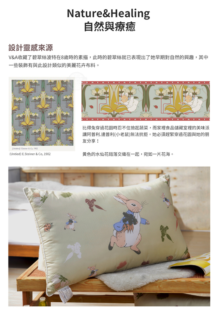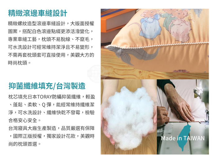 | 內容物 | 比得兔與V&A博物館-台灣製 日本TORAY防蟎抑菌可水洗枕 x 2 |