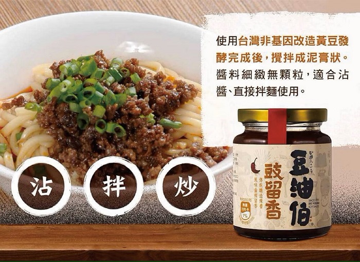 從唇齒留香的成語發想而來,使用台灣非基因改造黃豆發酵完成後,攪拌成泥膏狀,加入芝麻油增添香氣;加入少量糯米粉,讓芝麻油和黃豆醬緊密不分離,製作過程中不加防腐劑、不加人工色素,天然辣椒與黃豆醬你儂我儂的相融在一起,醬料細緻無顆粒,適合沾醬、直接拌麵使用。