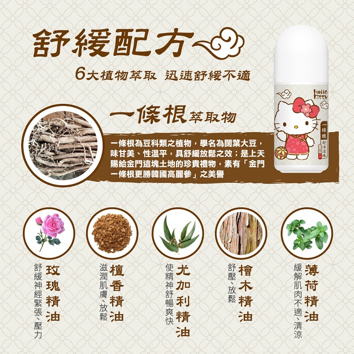 | 內容物 | Hello Kitty一條根舒活滾珠60ml-12瓶 |