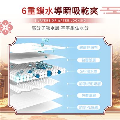 6重結構鎖水,吸水力升級,瞬吸乾爽