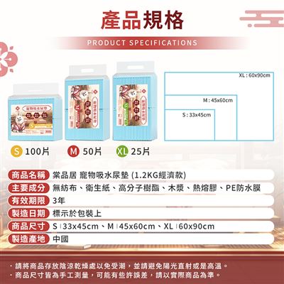 | 包裝內容/商品規格 | S(100片)-33x45cm M(50片)-45x60cm XL(25片)-60x90cm |