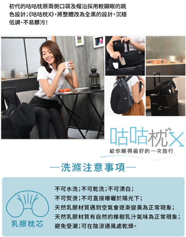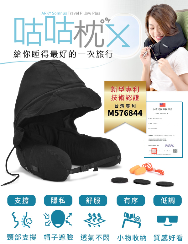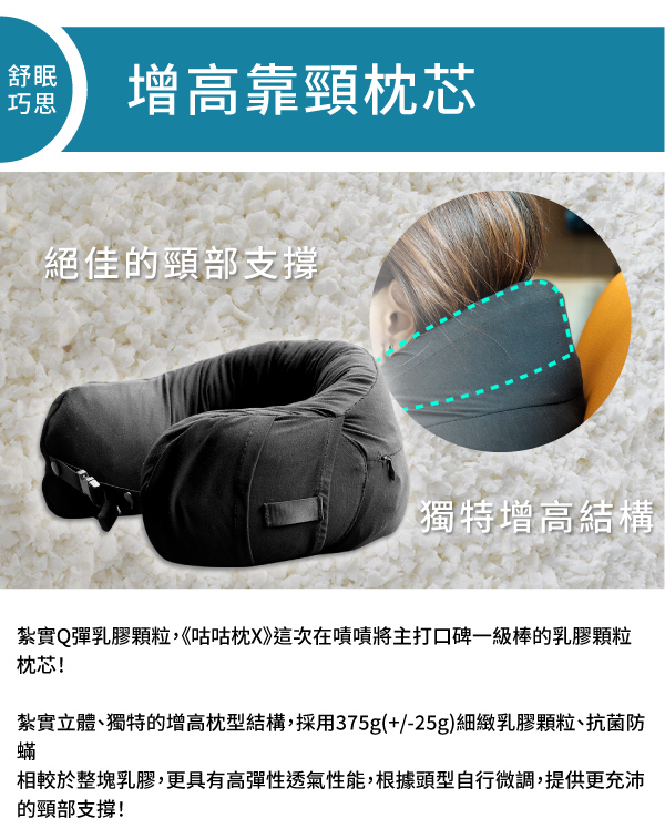| 內容物 | Somnus Travel Pillow 咕咕旅行枕X-乳膠顆粒版*1、擴香片(黑)*3、耳塞*1副 |