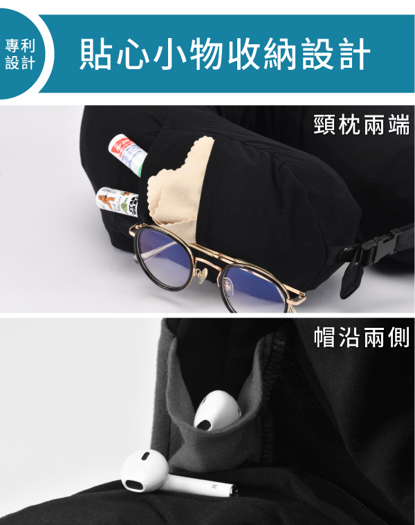眼鏡、耳機等小物 枕套收納口袋貼心設計