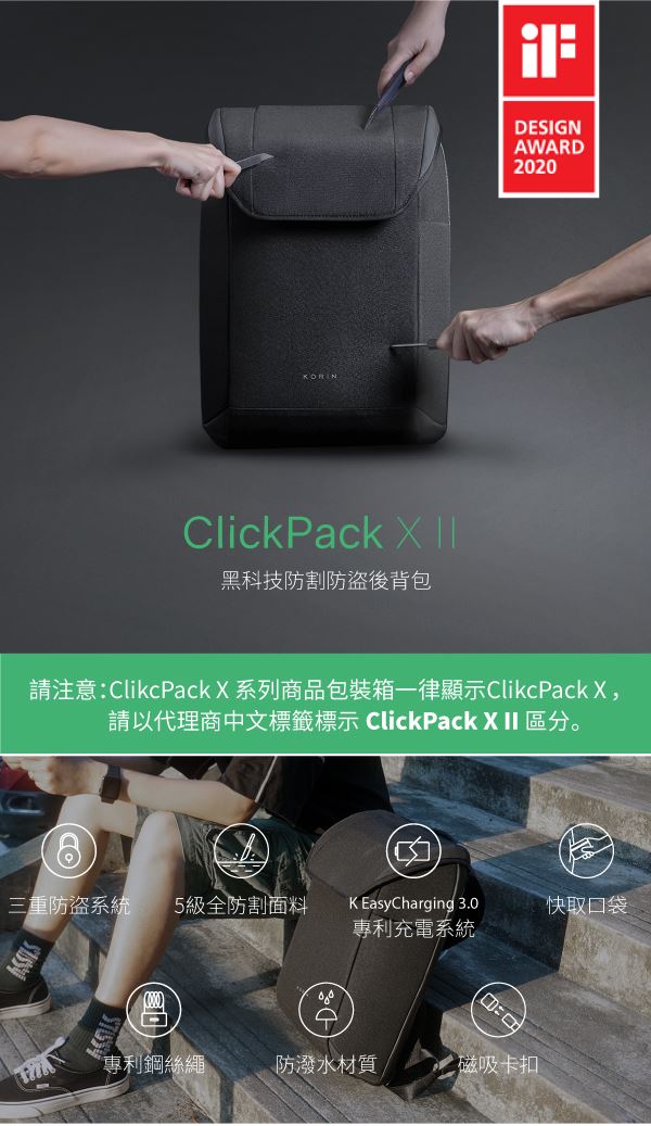 | 商品名稱 | KORIN ClickPack X II黑科技防割防盜後背包(代理商公司貨) |