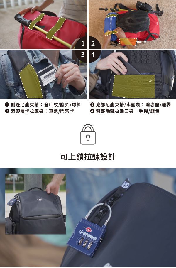 可上鎖拉鍊、隱藏口袋 安全防盜