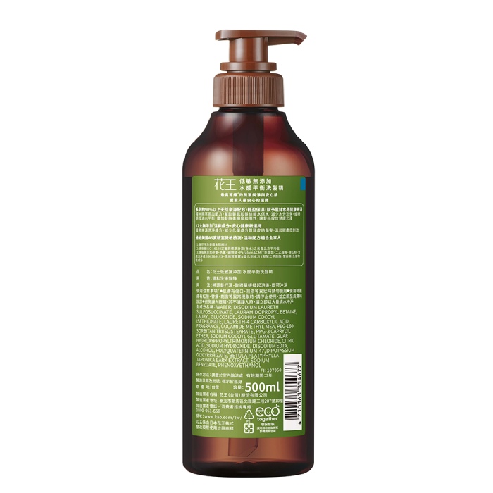 | 商品名稱/包裝內容規格 | 花王低敏無添加水感平衡洗髮精500ml |