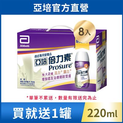 | 包裝內容/商品規格 | [買1盒送1罐]亞培 倍力素癌症專用即飲禮盒-香草口味(220ml x8入)+(贈品)亞培 倍力素癌症專用即飲配方-香草口味(220ml) x1罐 |