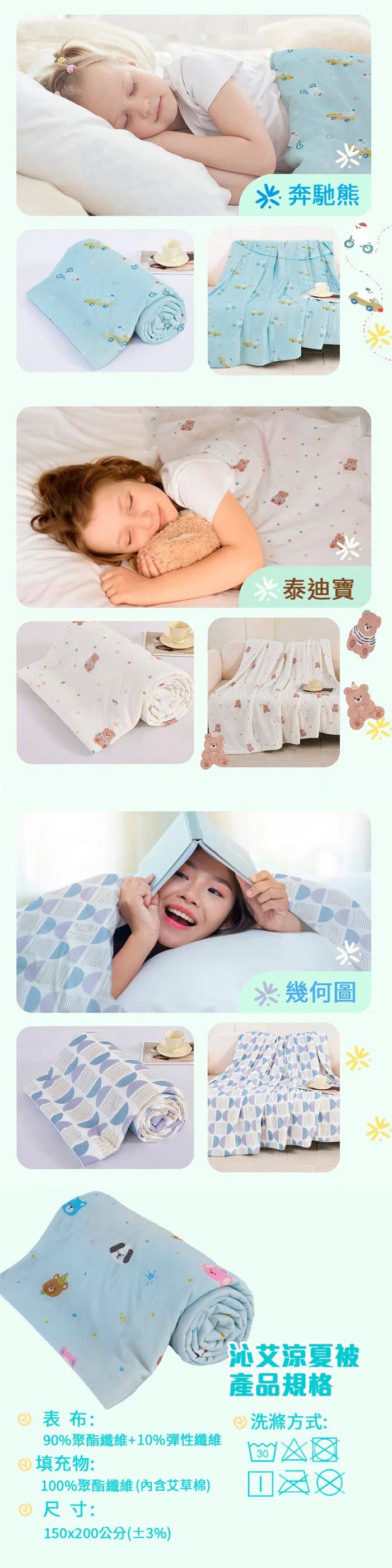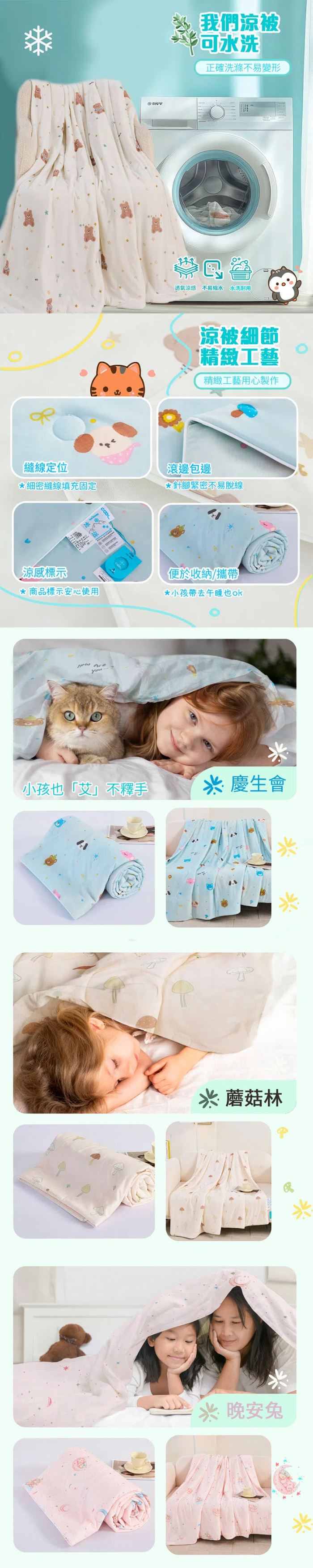 | 內容物 | 沁艾涼夏被5x6尺(多款任選)*1入 款式:慶生會、蘑菇林、晚安兔、幾何圖、奔馳熊、泰迪寶 |