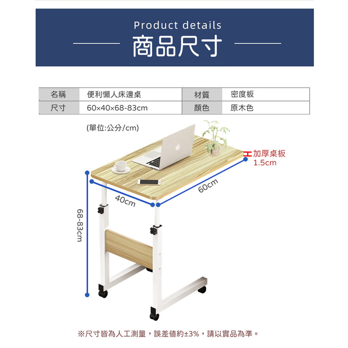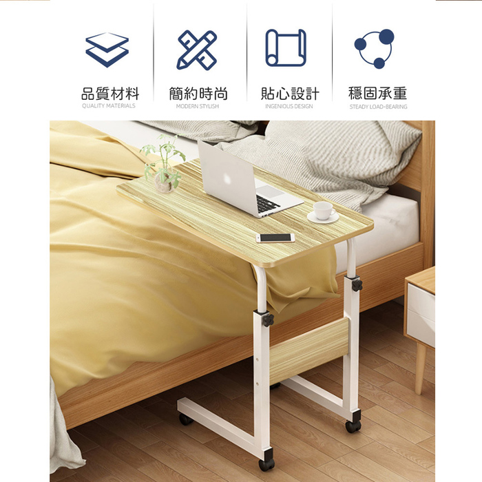 | 商品名稱 | 【AOTTO】加厚升級床邊沙發可升降附輪邊桌-60CM(懶人桌 升降桌 電腦桌 邊几) |