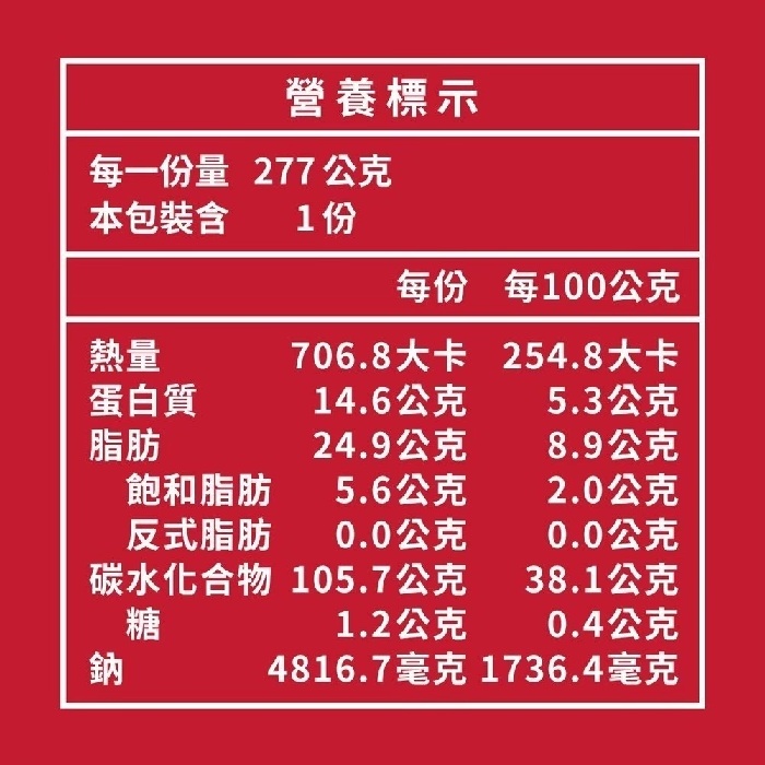 注意事項:本產品含有過敏原:含麩質之谷物、亞硫酸鹽類、大豆、花生、螺貝類、芝麻