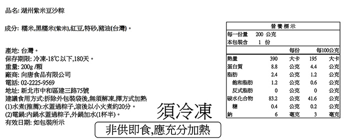 | 商品名稱 | 【南門市場立家】湖州紫米豆沙粽10顆(200g/顆) |