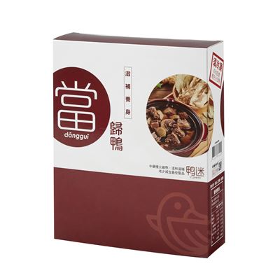 | 內容物(完整成份/食品添加物) | 水、鴨肉、米酒(米、精製食用酒精)、薑、鹽、當歸、熟地、川芎、肉桂、桂枝 |