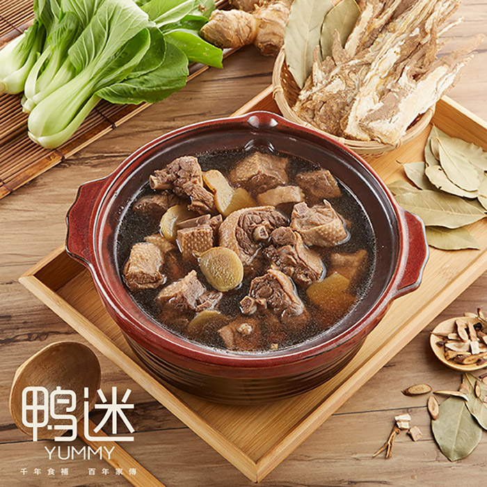 【群藥之首】的當歸,配伍熟地、川芎、桂枝等多種中藥材,與鴨骨慢火熬煮數小時,將鴨骨內的礦物質及營養完全釋放。鴨肉改刀成塊,再與小火熬煮,