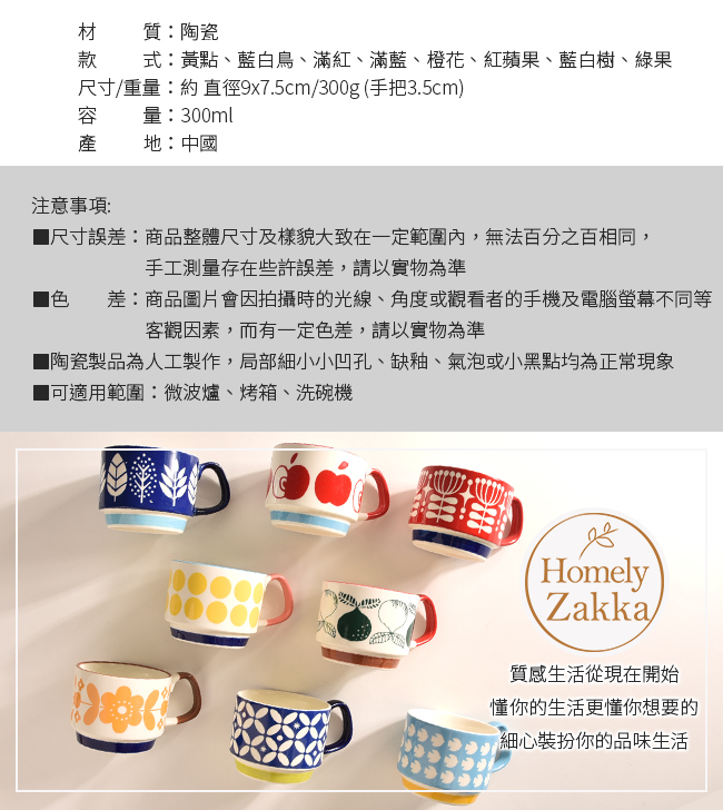 | 商品名稱 | 【Homely Zakka】日式復古陶瓷掛耳咖啡杯/創意馬克杯/果汁杯/牛奶杯 300ml_8款任選 |
