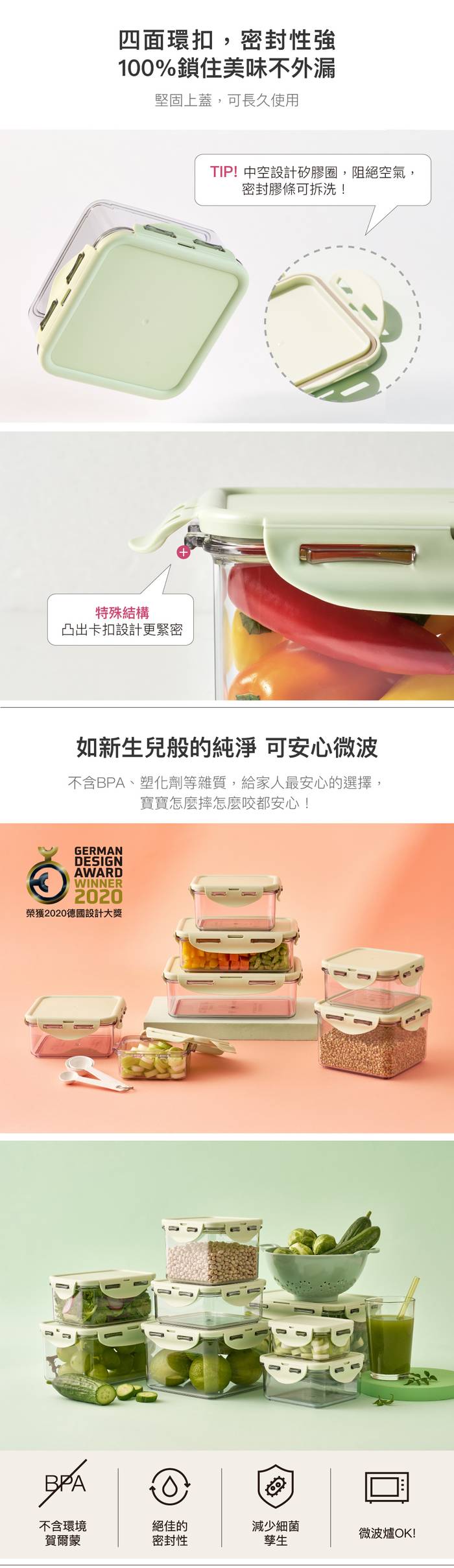 - 四面環扣設計,擁有絕佳的密封效果,保鮮原味