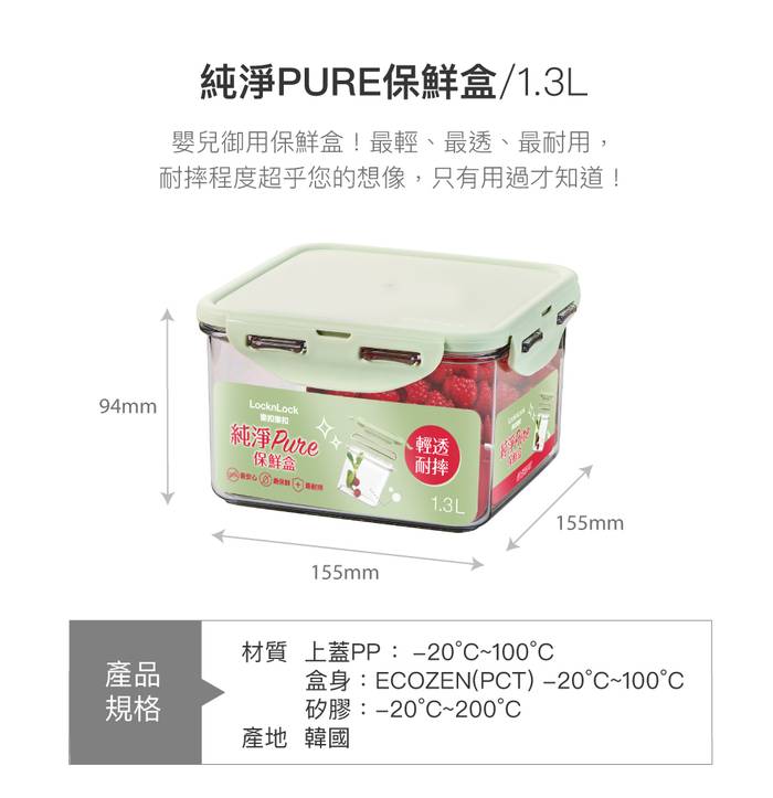 | 商品名稱 | 樂扣樂扣純淨PURE保鮮盒/1.3L/正方 |