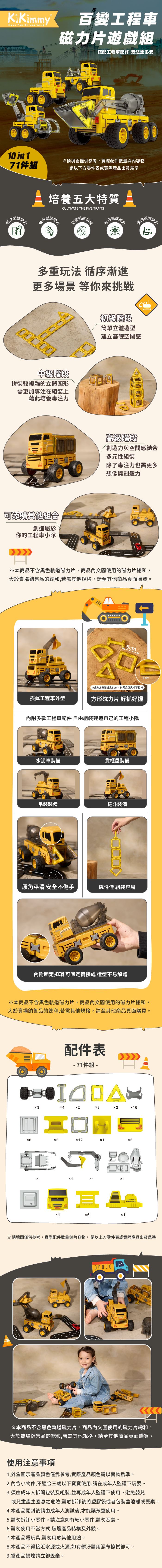 | 商品名稱 | Kikimmy 百變工程車磁力片遊戲组-71PCS |