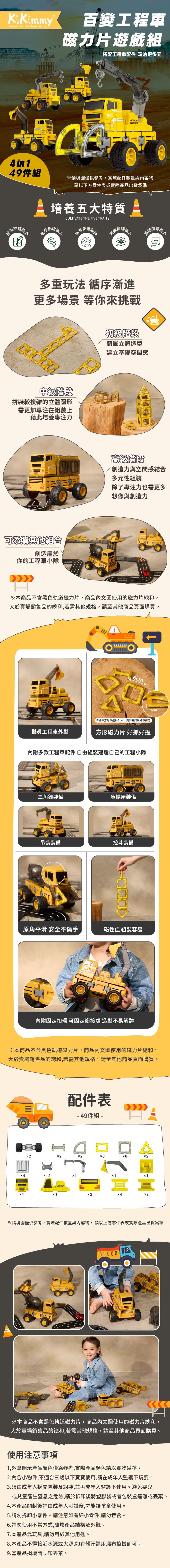 | 商品名稱 | Kikimmy 百變工程車磁力片遊戲组-49PCS |