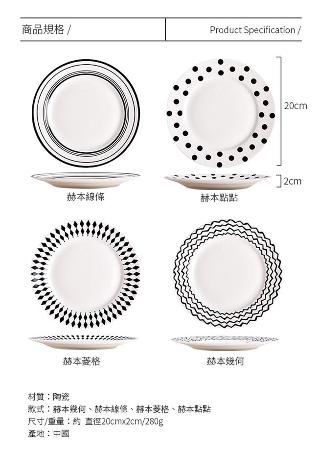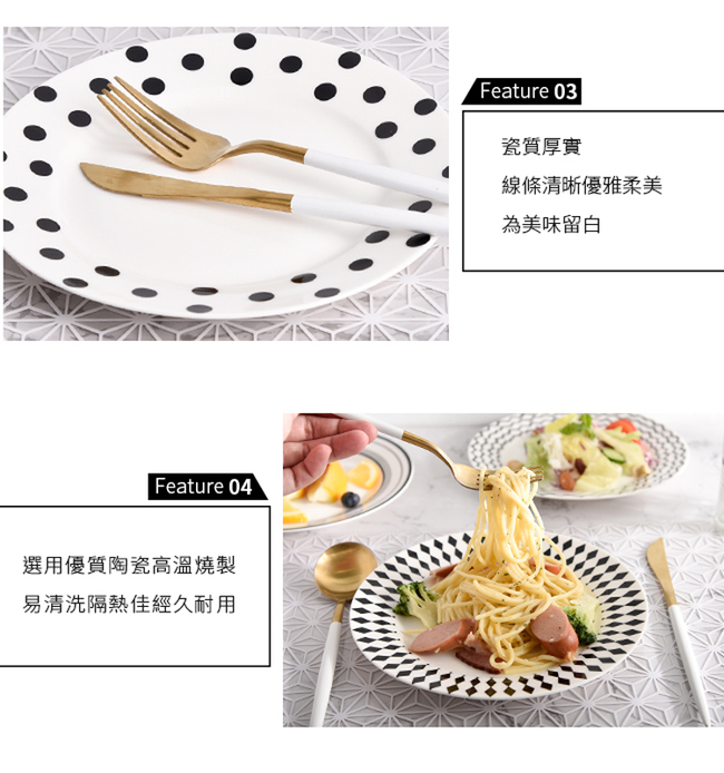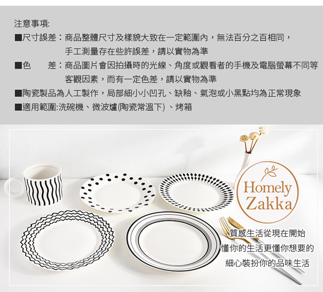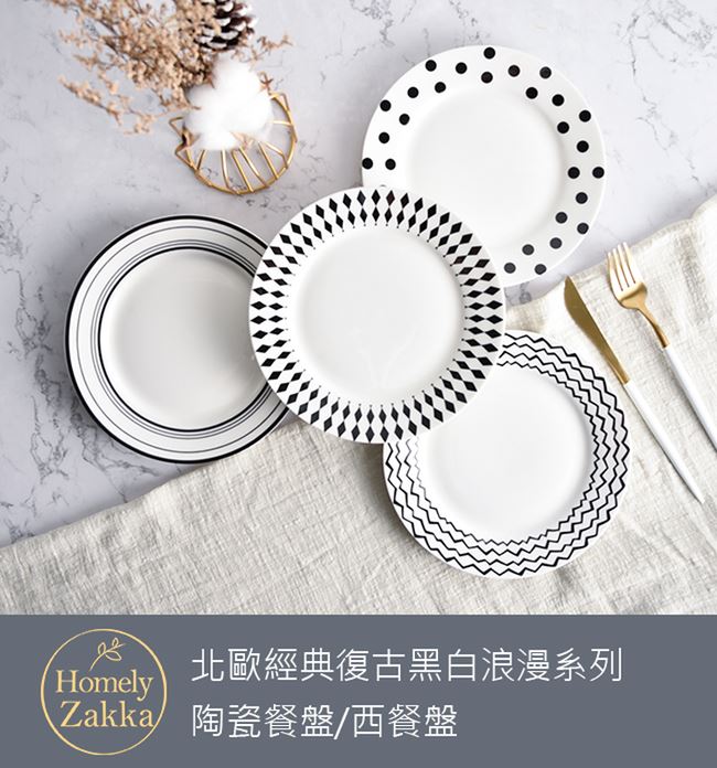 | 商品名稱 | 【Homely Zakka】北歐經典復古黑白浪漫系列陶瓷餐盤/西餐盤 2入組 |