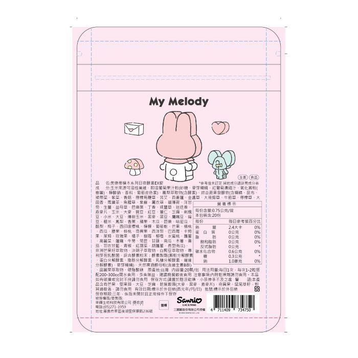 | 商品名稱 | 東輝生技-美樂蒂積木系列日夜酵素20粒*5包 |