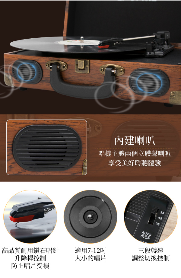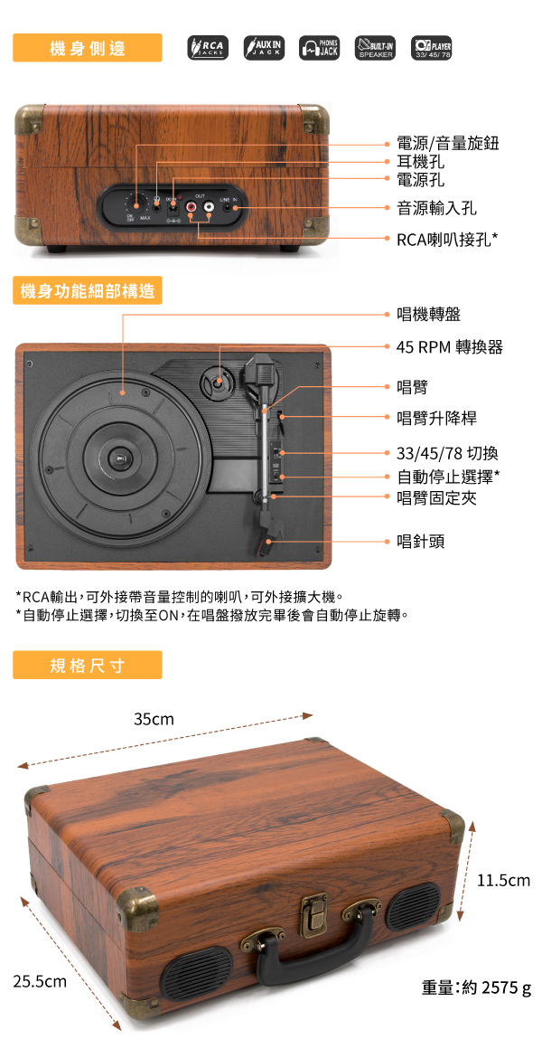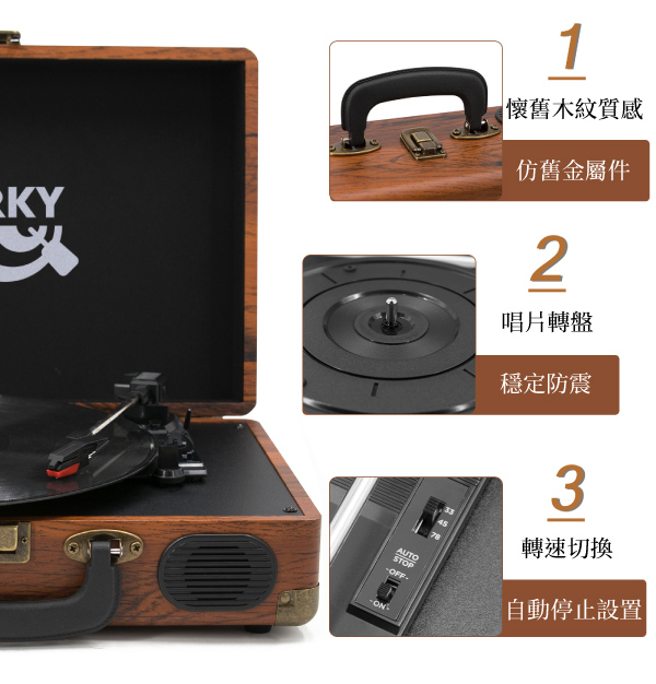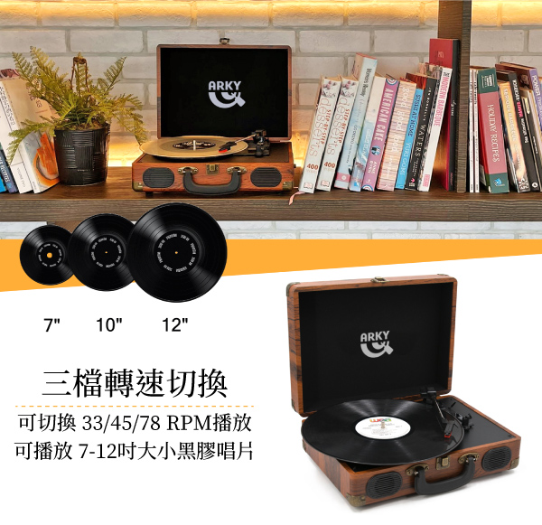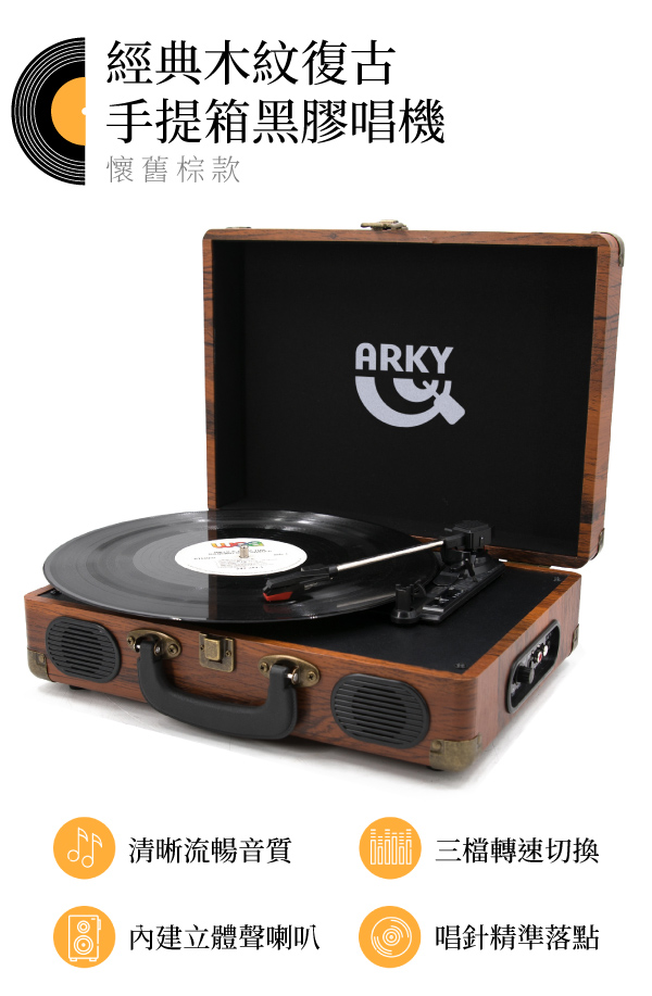 | 商品名稱 | ARKY 經典木紋復古手提箱黑膠唱機 - 懷舊棕款 |