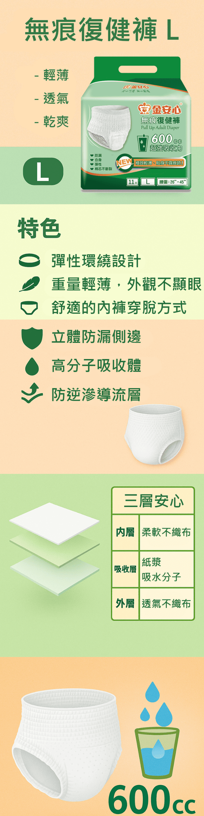 | 內容物 | 金安心 無痕復健褲-L號 |