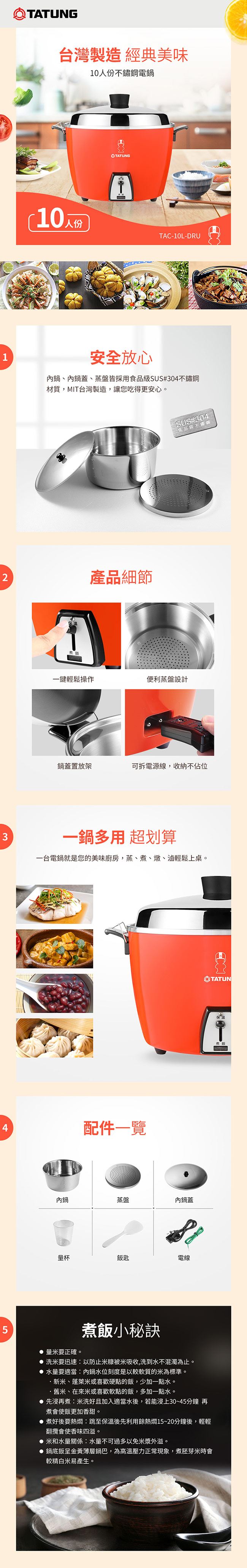 | 商品名稱 | TATUNG大同 10人份不鏽鋼電鍋(大同寶寶剪影款)-紅色 TAC-10L-DRU |