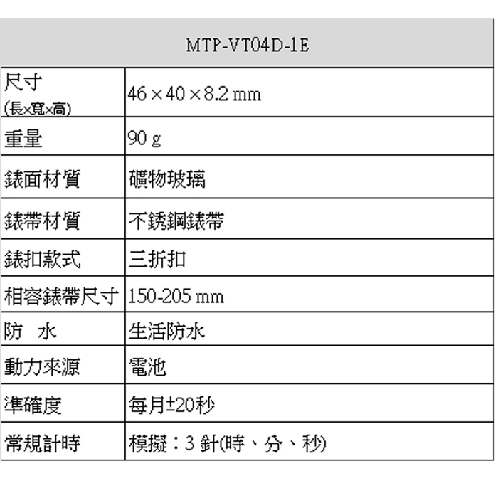 CASIO 紳士簡約鋼帶男錶 MTP-VT04D-1E