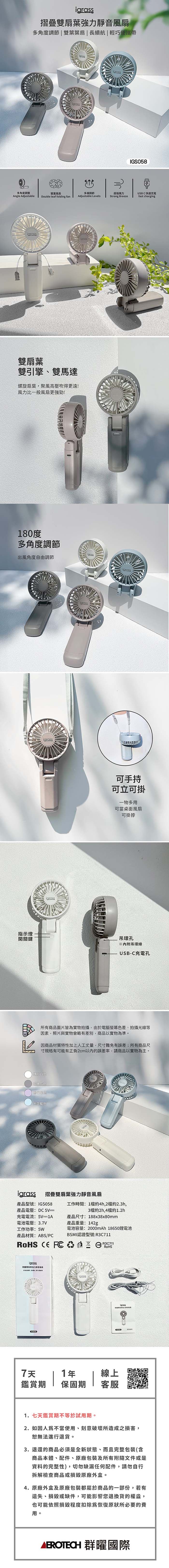 | 商品名稱 | igrass 摺疊雙扇葉強力靜音風扇 |