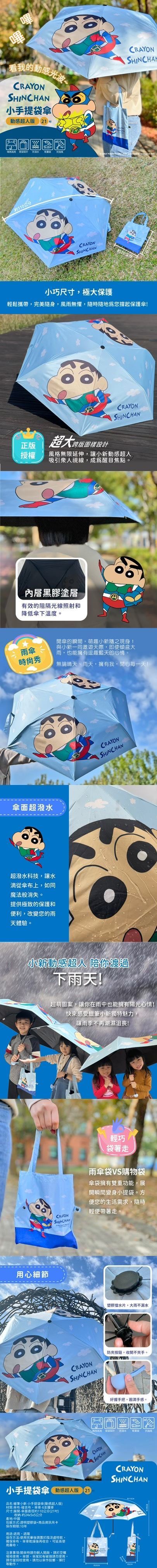 | 商品名稱 | 蠟筆小新 小手提袋傘(動感超人版)-6支 |