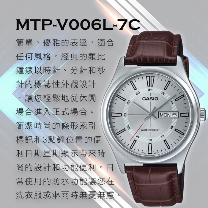 CASIO 紳士經典指針錶 MTP-V006L-7C
