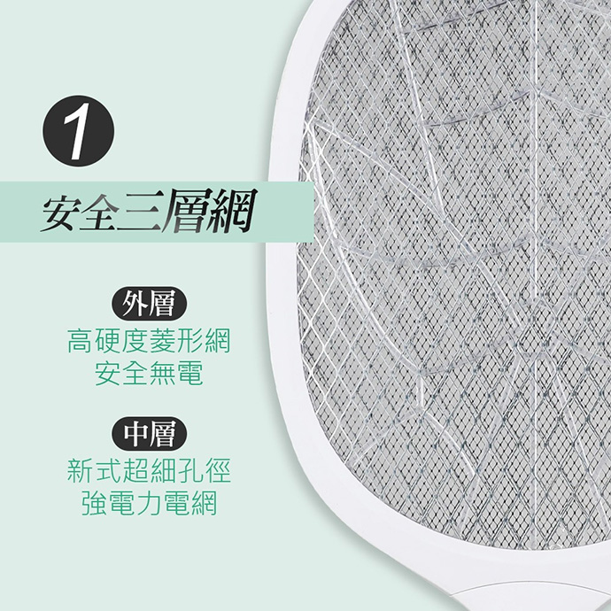 1.兩種滅蚊方式:手持為滅蚊拍+充電時為滅蚊燈