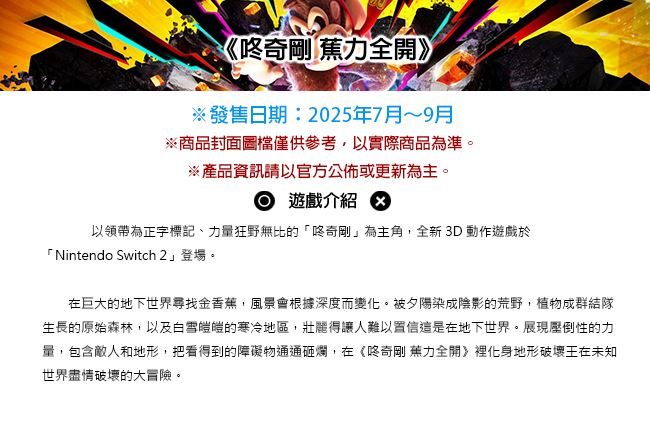 | 【商品名稱】 | Nintendo Switch 2 瑪利歐賽車世界 主機組合+NS2咚奇剛 蕉力全開 |