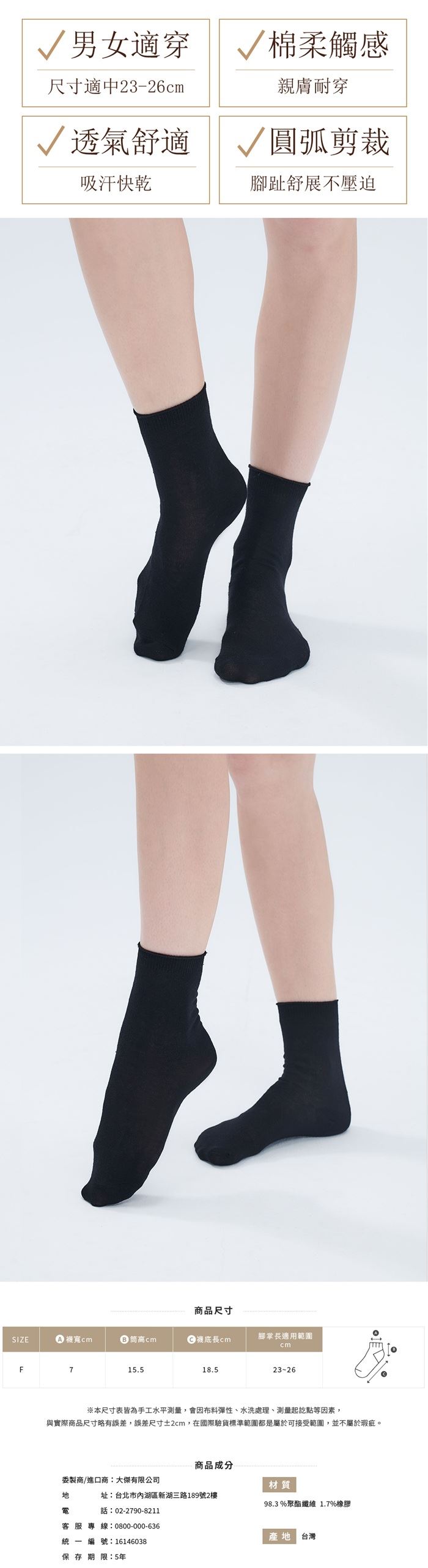 | 內容物 | 4入/包-6組 日拋免洗中筒襪 |