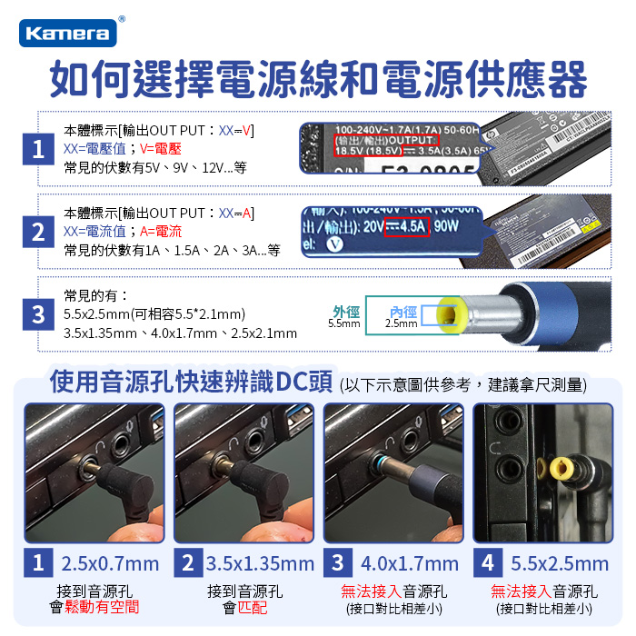 ※若您需要客服協助,請提供電源規格照片,客服可協助確認電壓與電流等規格,但無法僅憑照片直接判斷尺寸。