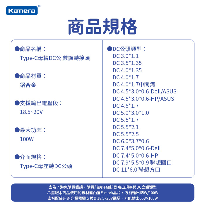 ※購買前,請務必確認您的筆電型號、充電孔是否與轉接頭規格相符,再進行選購。