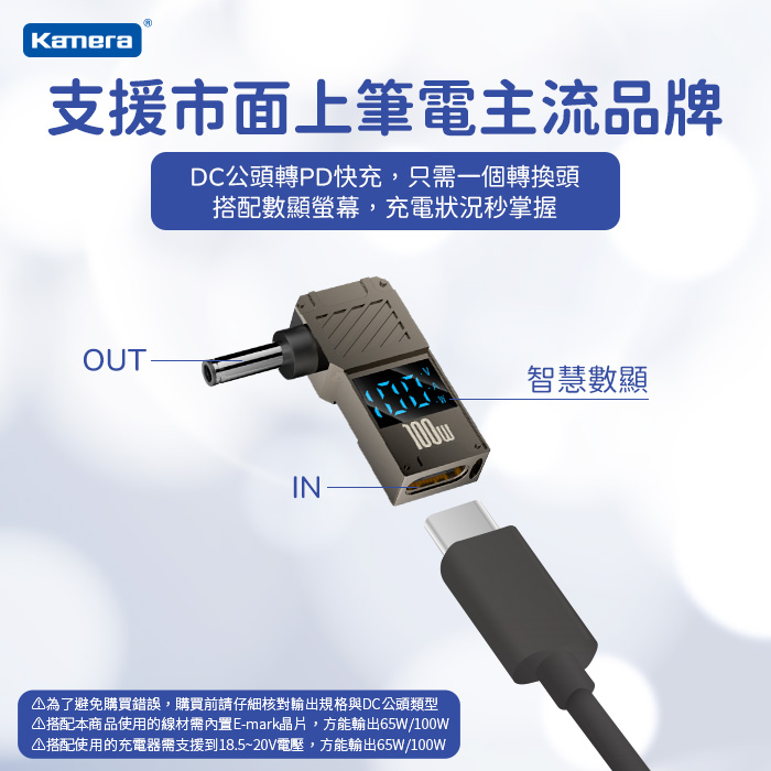 商品名稱 Type-C母轉DC公 數顯轉接頭-20V/100W/5A