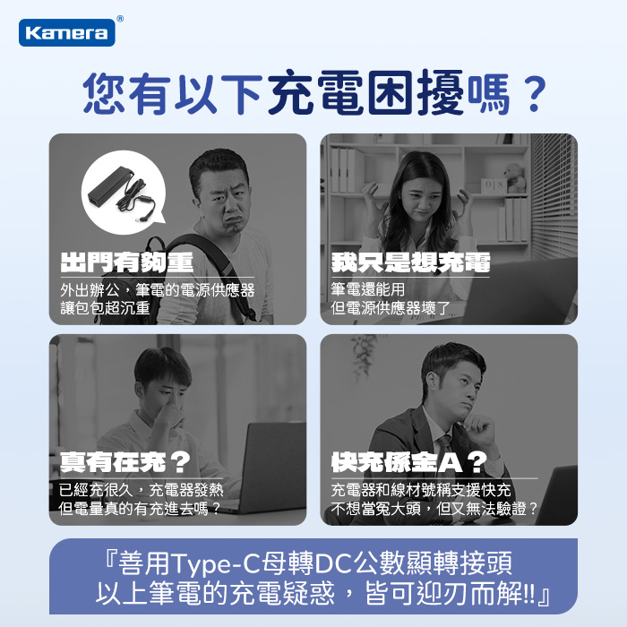 只要善用Type-C母轉DC公 數顯轉接頭,再確認輸出電壓、電流是否支援,以上的困難通通不是問題!