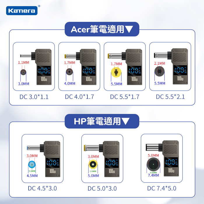 ※購買前,請務必確認您的筆電型號、充電孔是否與轉接頭規格相符,再進行選購。
