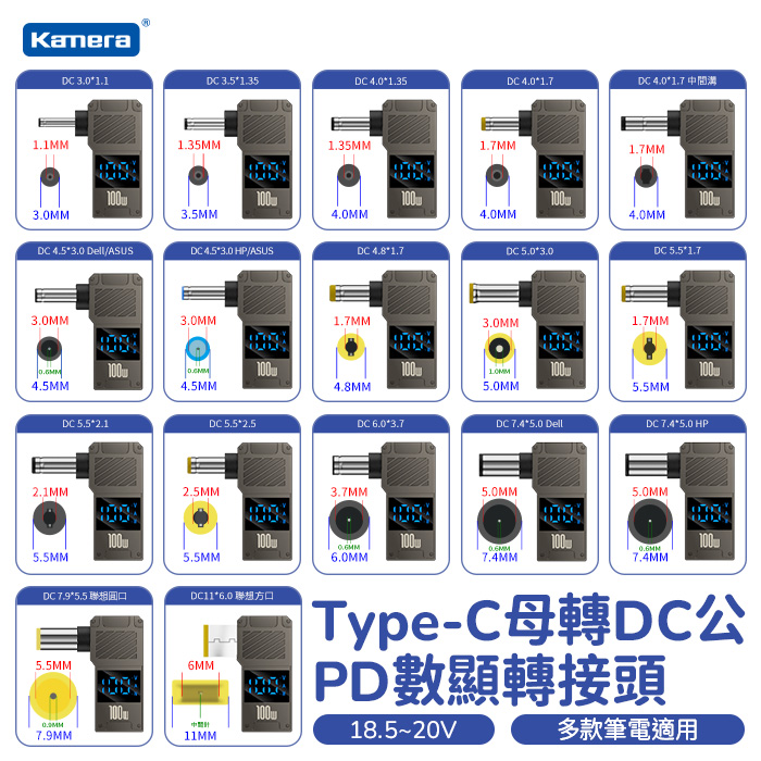 ※購買前,請務必確認您的筆電型號、充電孔是否與轉接頭規格相符,再進行選購。