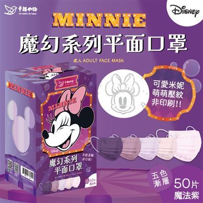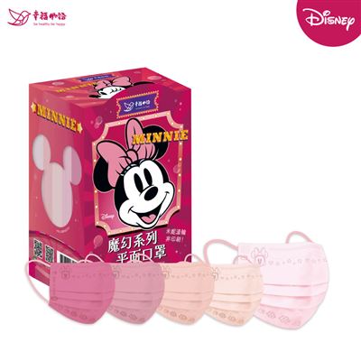 【4盒組】幸福物語成人平面迪士尼 5色漸層口罩-米妮粉(50片/盒)