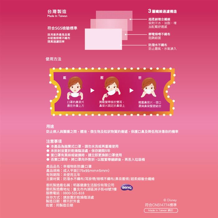 【醫療器材核准字號】 迪士尼非醫療口罩